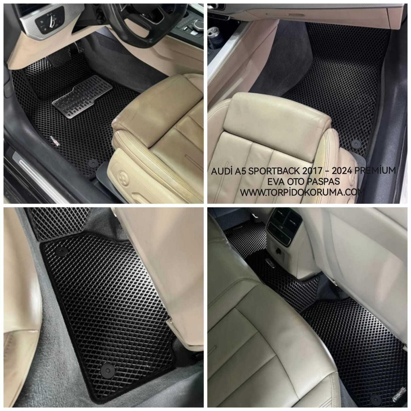 Audi A5 Sportback’in zarif iç tasarımını tamamlayan bu paspaslar, estetik görünümüyle de dikkat çeker. Farklı renk seçenekleriyle sunulan bu ürün, aracınızın iç mekanına modern bir dokunuş katmaktadır. Hem şık hem de işlevsel bir çözüm arayanlar için ideal bir üründür.