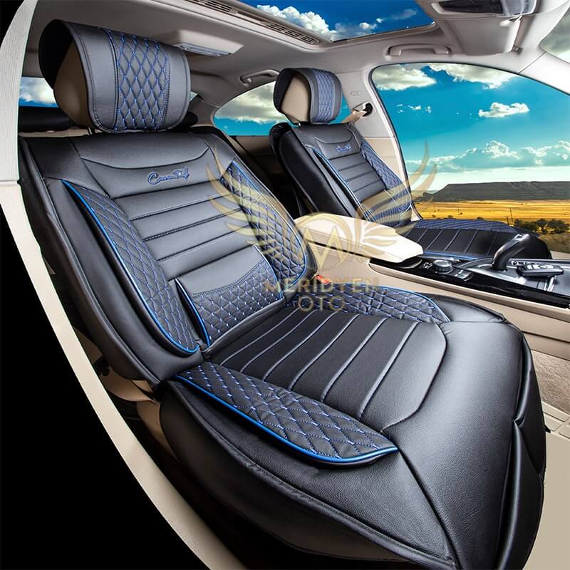 Elit Siyah Mavi Deri Araç Koltuk Kılıfı