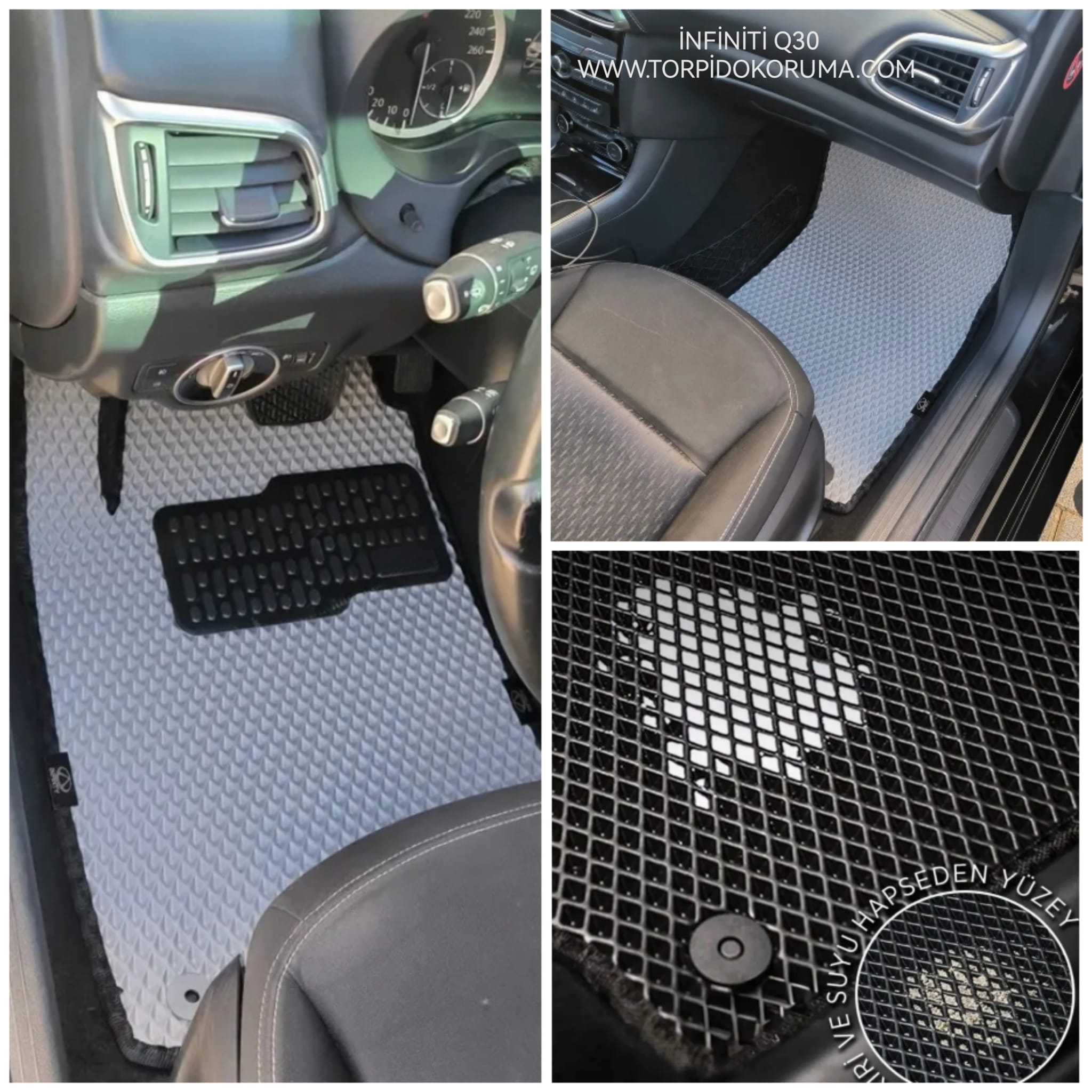 Paspaslar, Infiniti Q30 modelinin iç tasarımına tam uyum sağlayacak şekilde özel olarak kesilmiştir. Kendi aracınıza tam oturan bu akıllı paspaslar, kaymaz yapısı sayesinde sürüş esnasında güvenliği artırır. Hem sürücü hem de yolcu alanında mükemmel bir uyum sağlarken, araç içi estetiğinizi de ön planda tutar. Ayrıca, dış mekanda şıklığı yansıtacak bir görünüm sergiler.