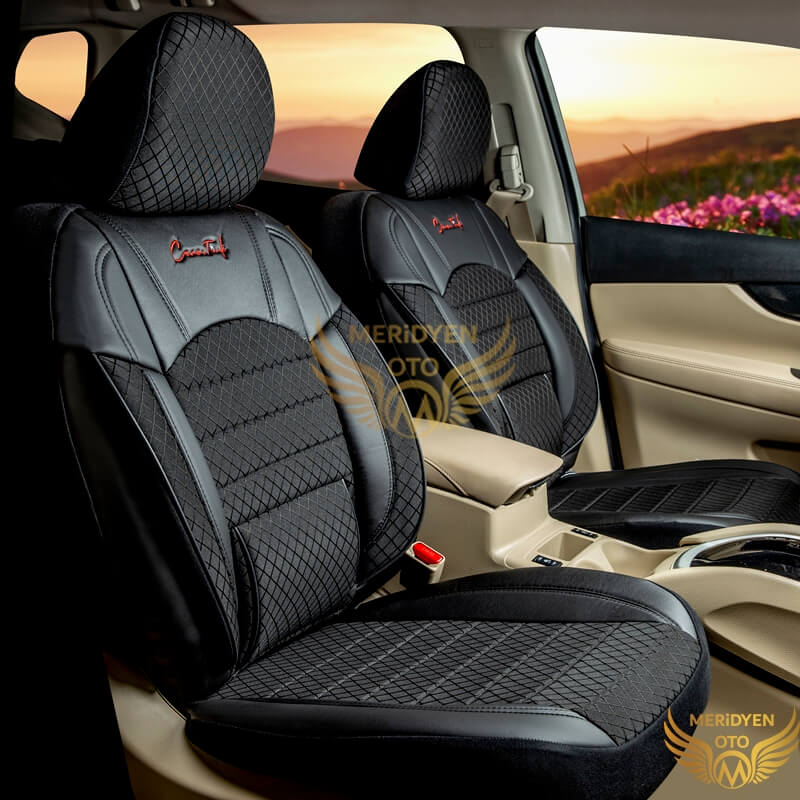 Klas Kapitone Jakar Kumaş Siyah Siyah Deri Oto Kılıfı