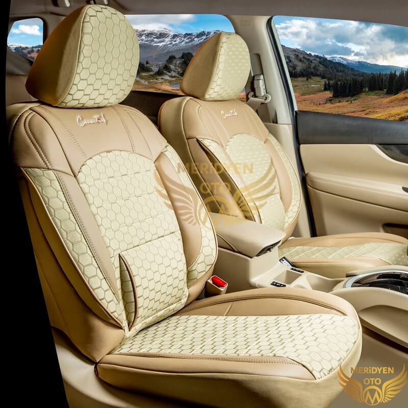 Klas Petek Jakar Kumaş Bej Deri Oto Koltuk Kılıfı