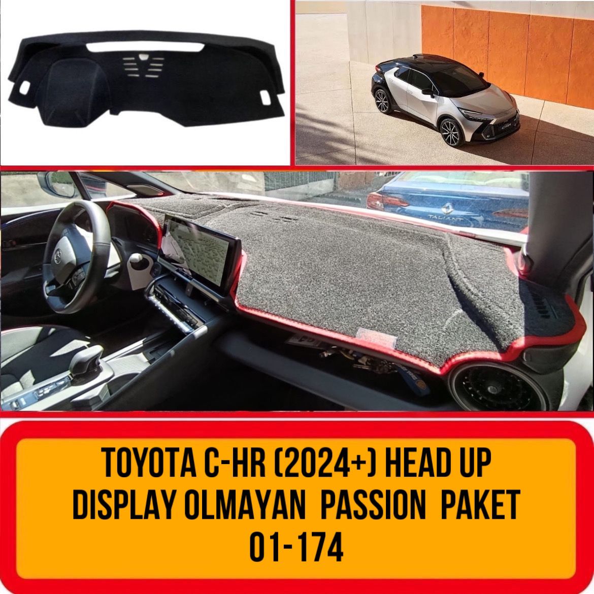 Toyota C - Hr 2024+ Head Up Display Olmayan Passion X Full Paket Konsol Torpido A3D Koruma Koruyucu Kılıfı