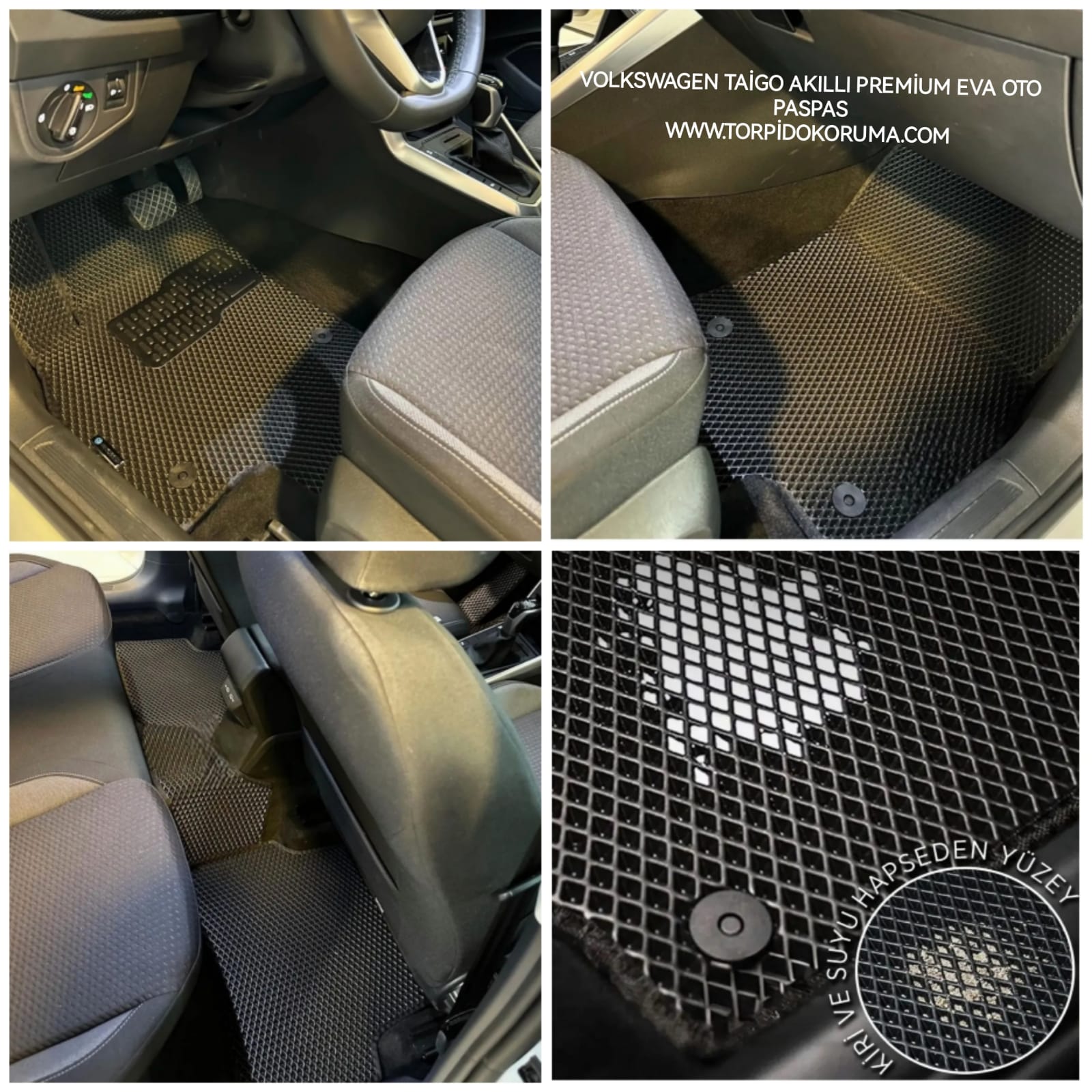 Volkswagen Taigo Kasa Akıllı Premium Eva Oto Paspas, aracınızın iç mekanını koruyarak uzun ömürlü bir kullanım sağlar. Doğaya duyarlı malzemeleriyle, şıklığı ve pratikliği bir arada sunmaktadır. Aracınıza değer katmak ve iç alanınızı korumak için bu yüksek kaliteli paspasları tercih edebilirsiniz. Şimdi, Volkswagen Taigo’nuz için en iyi korumayı sağlayın!
